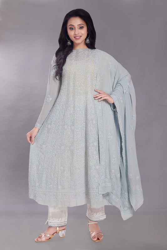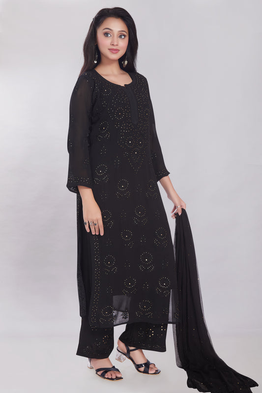 Mulchanderi 4 piece Chikankari Set (Semi-Stitched)