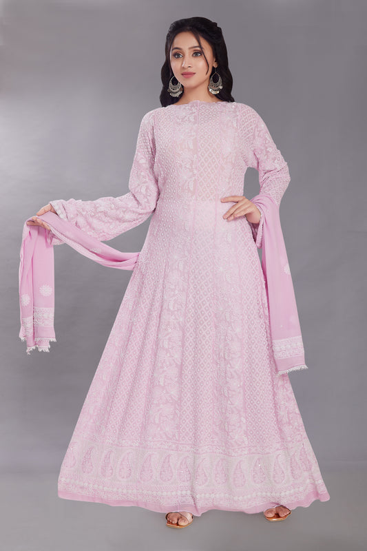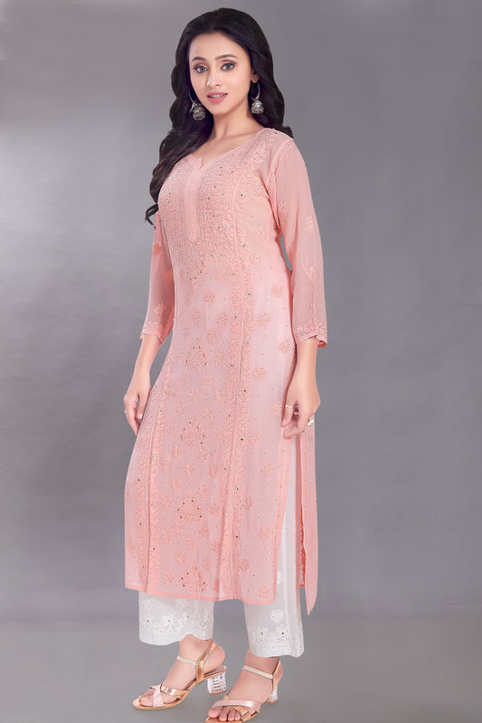 Naaz Powder Pink Georgette Gala Booti Kurti with Mukaish