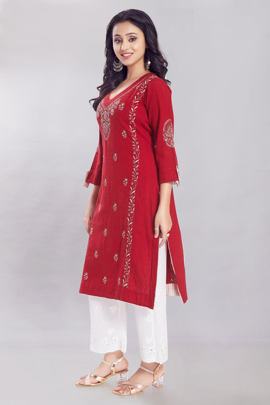 Naaz Plum Purple Georgette Mukaish Kurti.