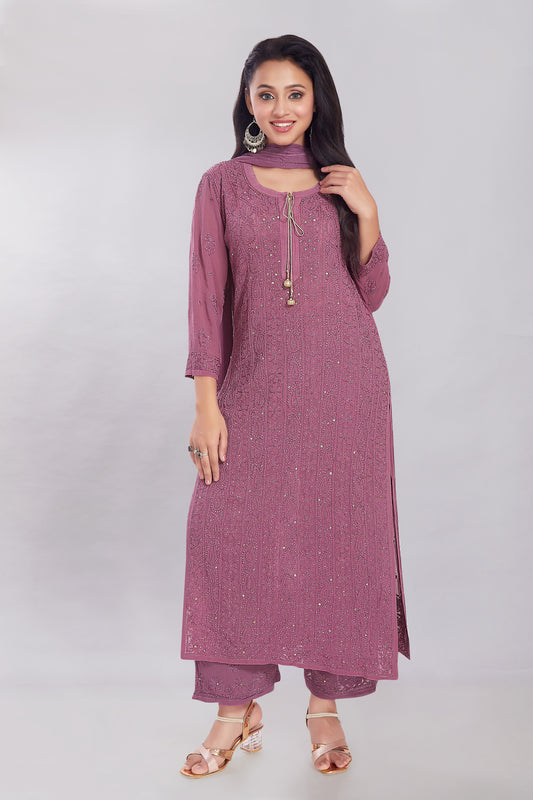 Myrrah Plum Purple Georgette Jaal Mukaish Set