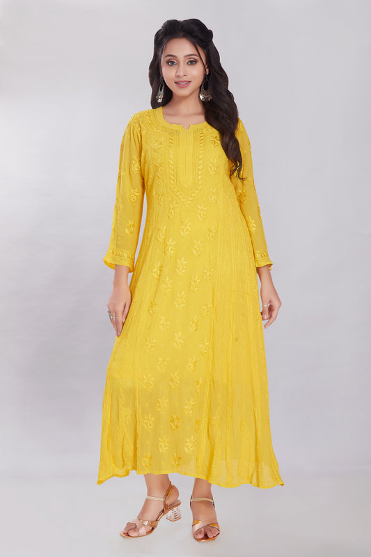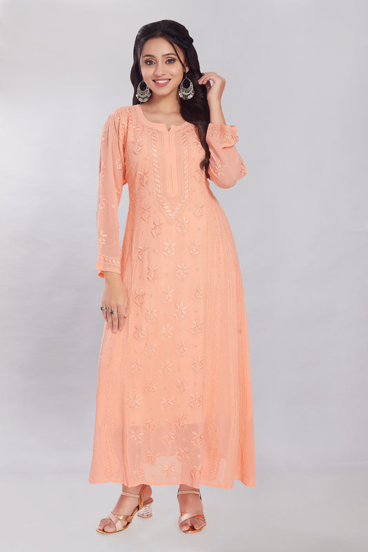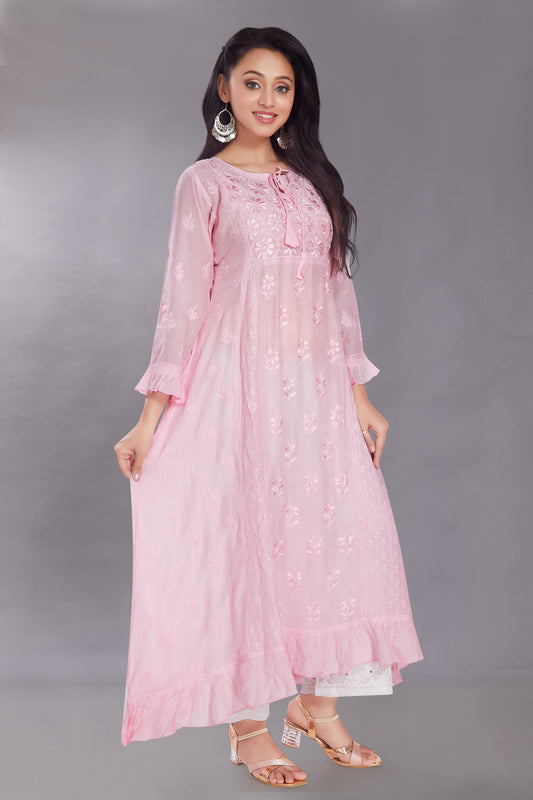 Nazish Flowering Rose (Pink) Muslin Kalidaar Gown