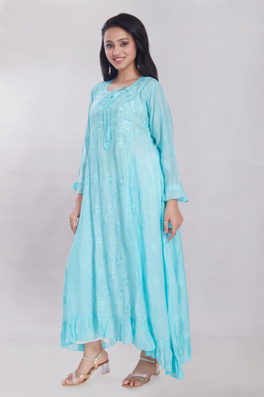 Nazish Aqua Blue Muslin Kalidaar Gown