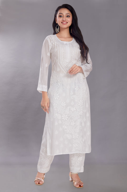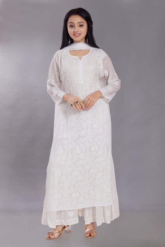 Khusnuma White Georgette Jaal Kurti (Only Kurti)
