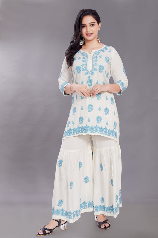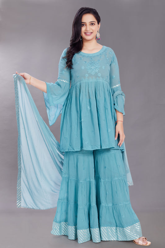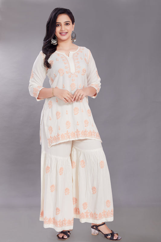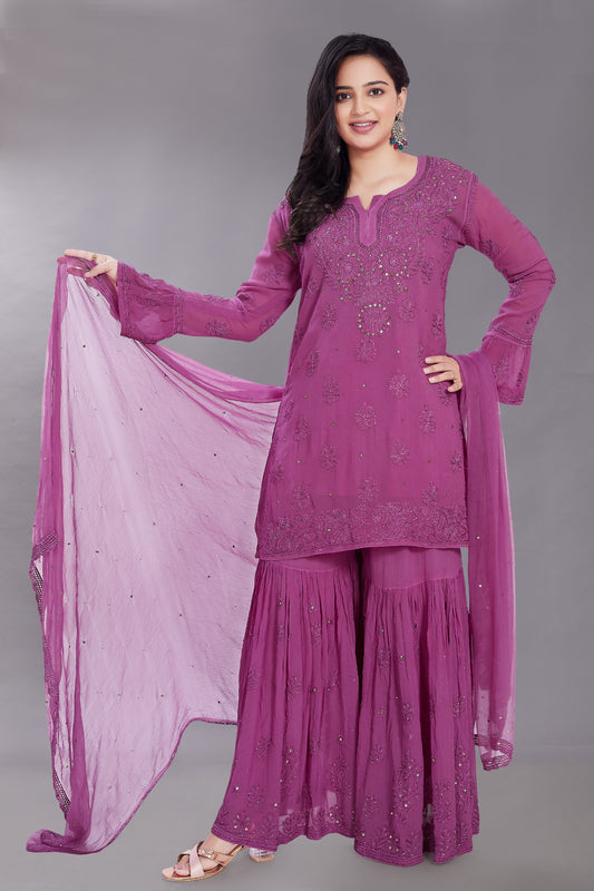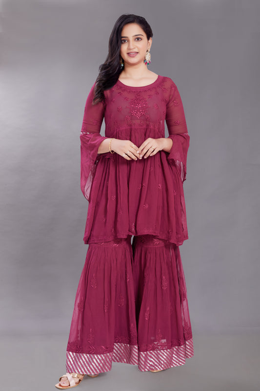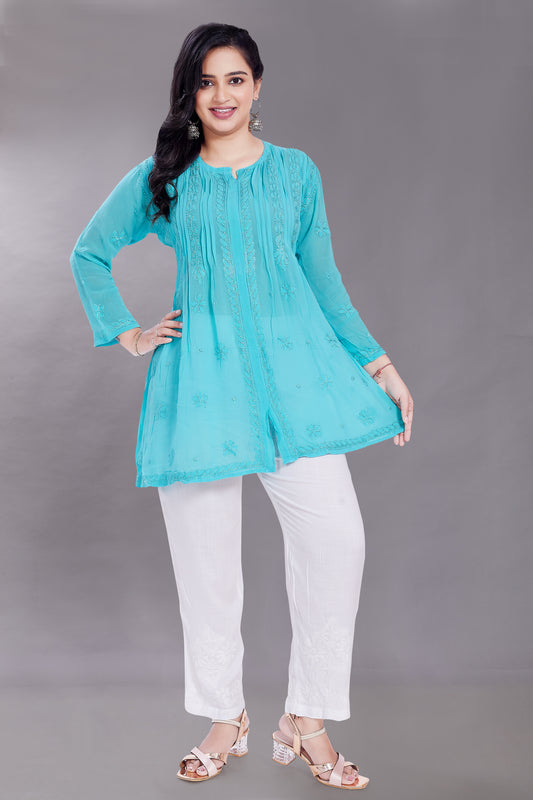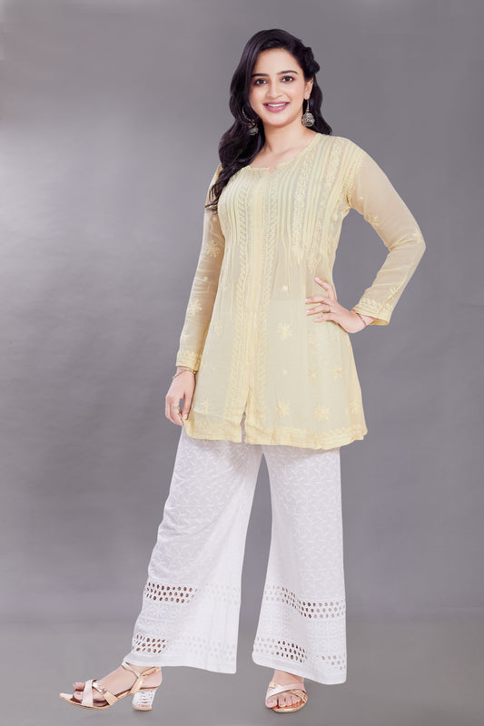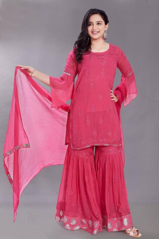 Naaz Powder Pink Georgette Gala Booti Kurti with Mukaish