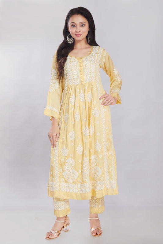 Huma Yellow Modal Satin Gherdaar Set