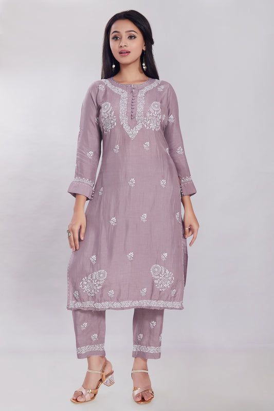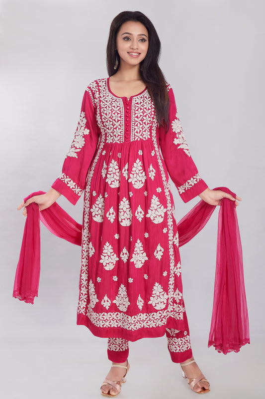 Dola Silk Chikankari Set.
