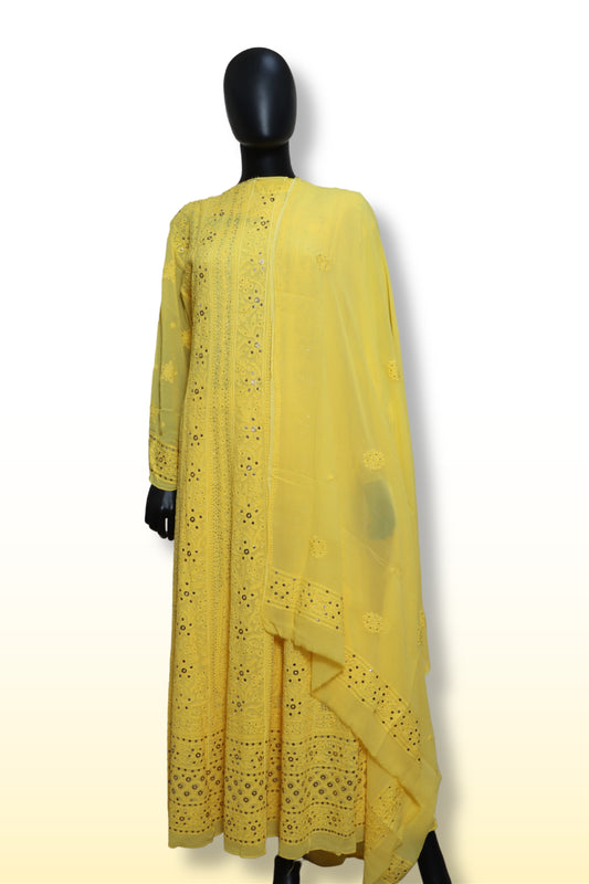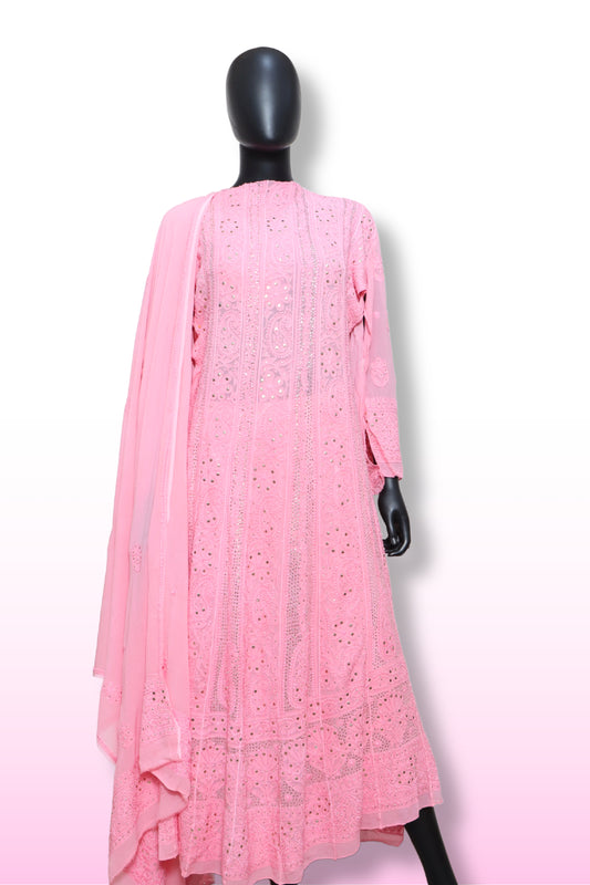 Viscos Anarkali with Heavy Chikankari and Mukaish work Four piece set.