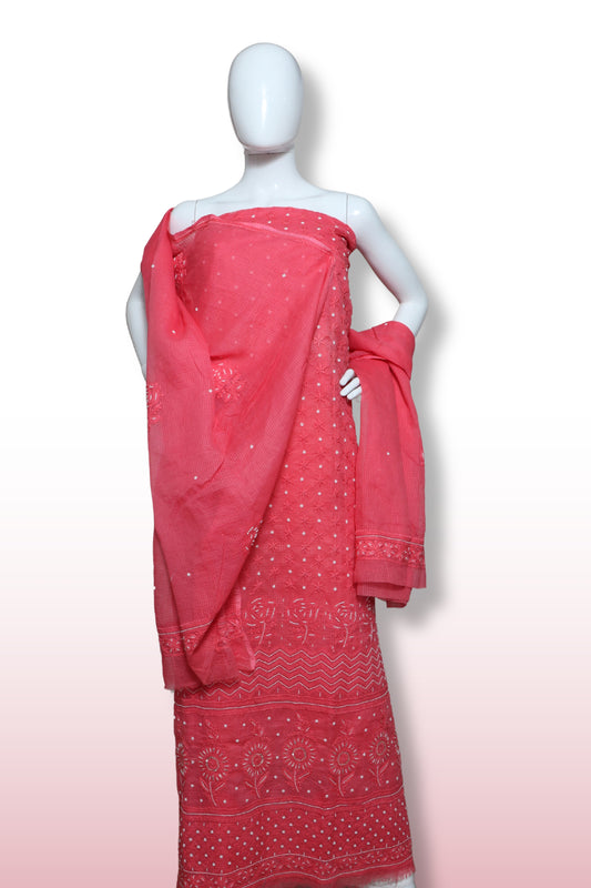 Watermelon Pink Kota Doria 4 Pcs Set (Unstitched)